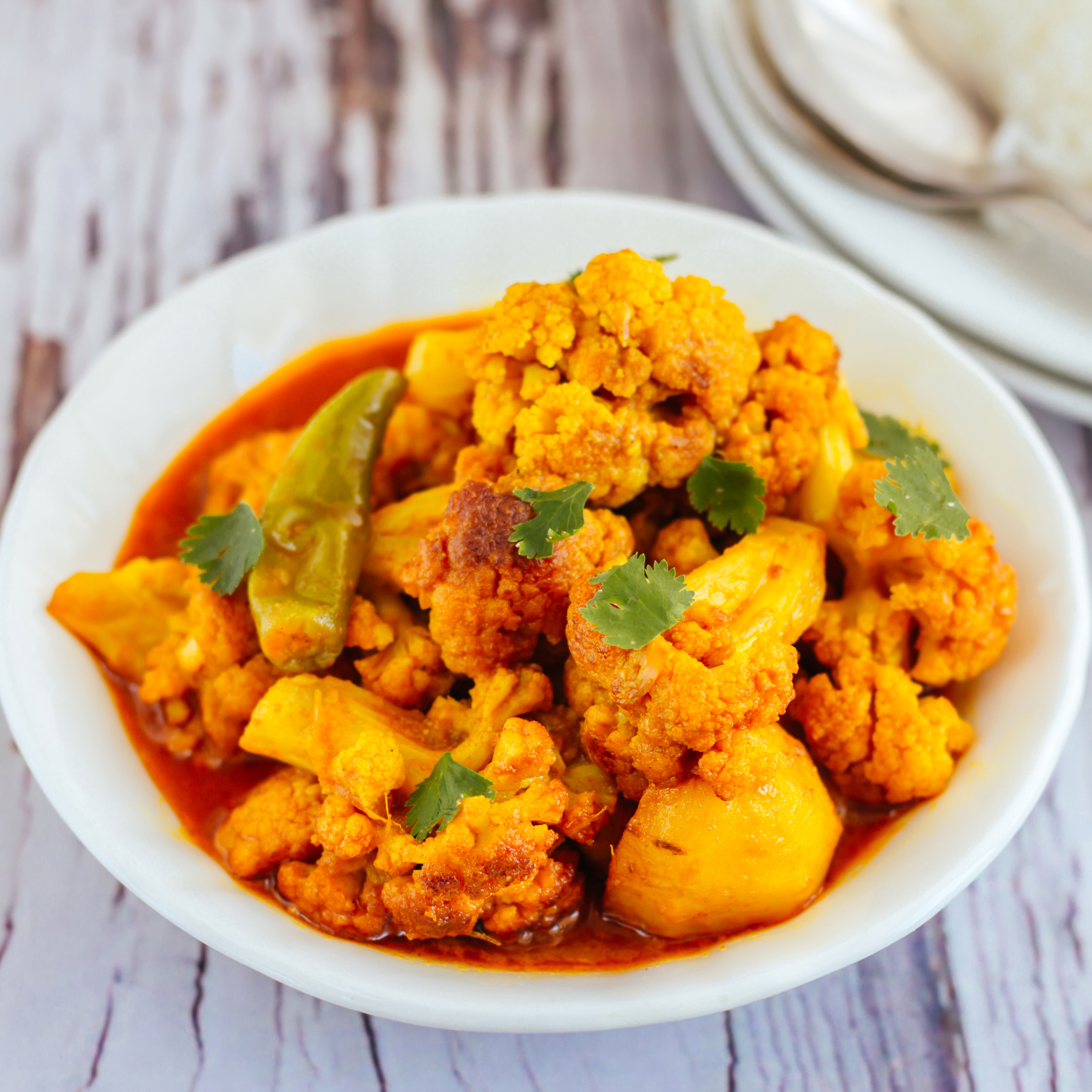 Cauliflower and potatoes sautéed with turmeric, cumin, and spices.